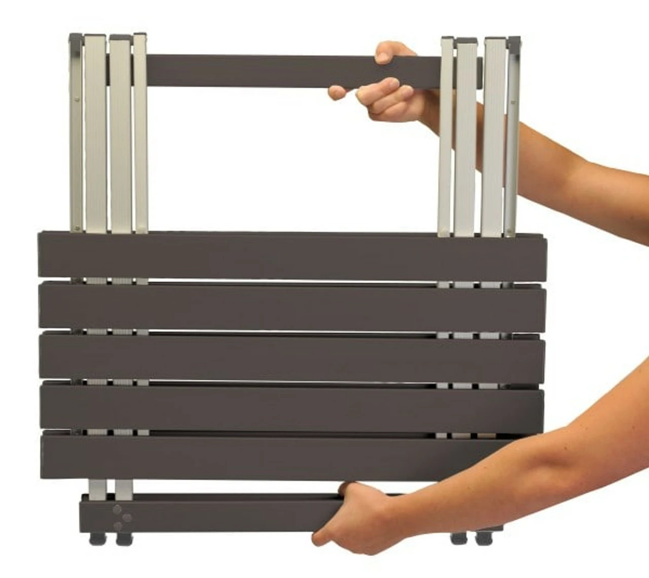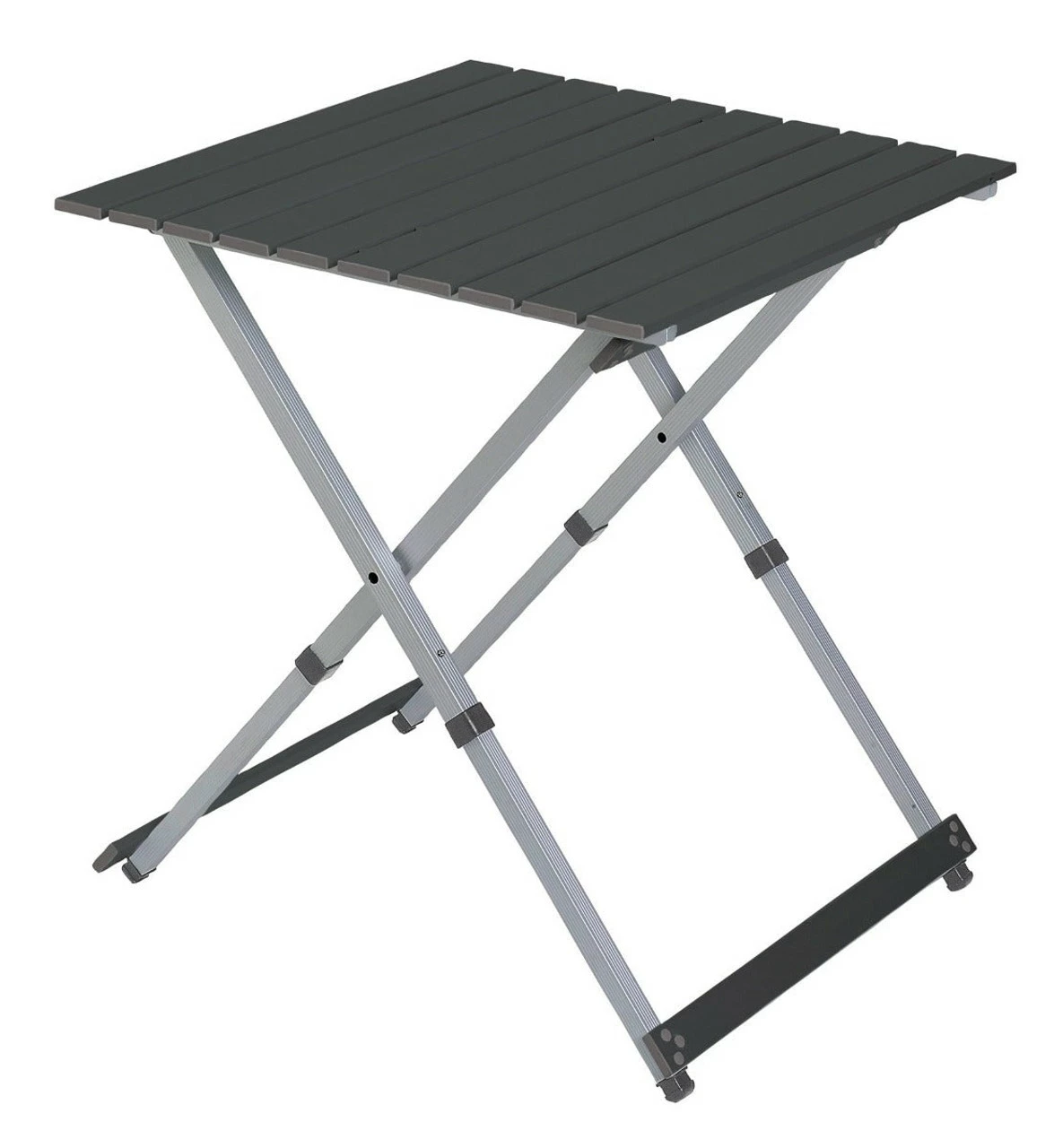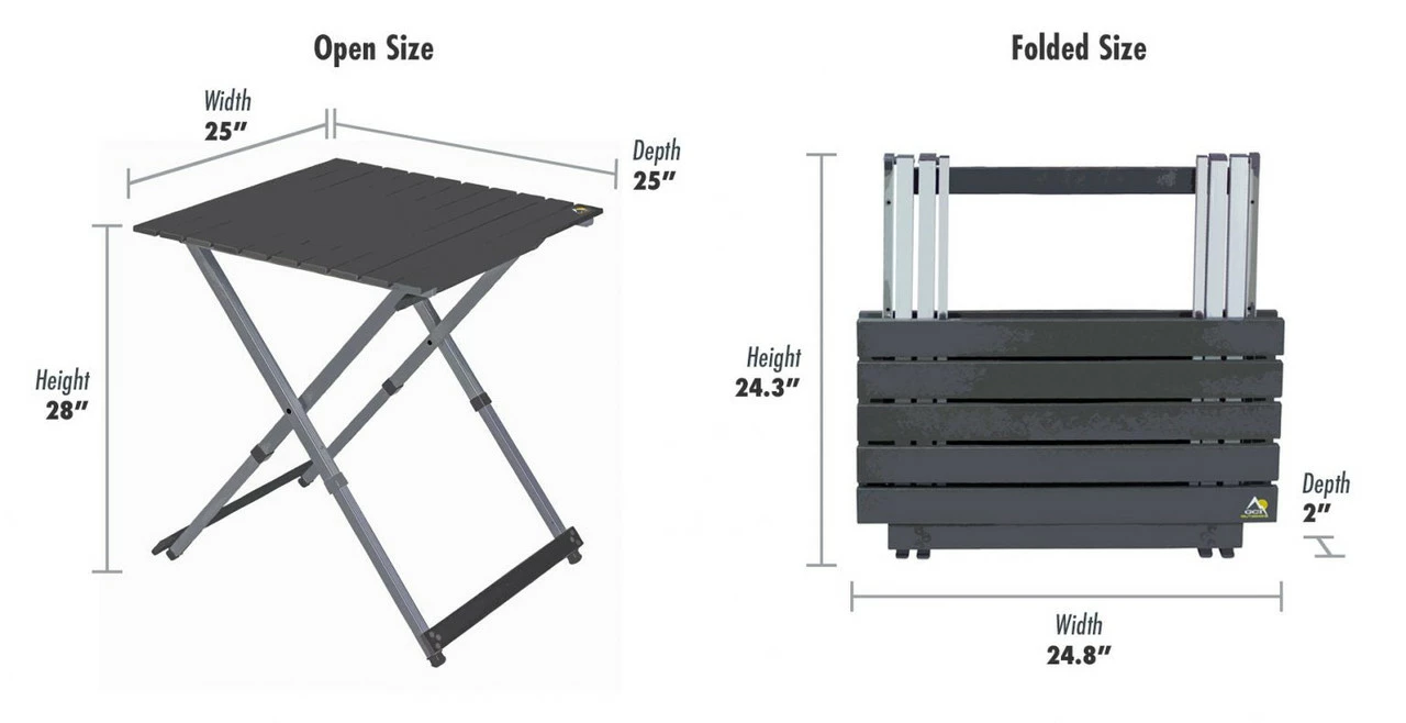 The Compact Camp Table features a unique one-piece compact design. This table folds to half the size of other camp tables. When legs are extended, this is a great table for two or can be used as a side table . Lightweight, aluminum frame supports up to 60 pounds. This portable table folds up quickly and easily with its patent-pending Squeeze Telescoping Technology for easy storage. It is Ideal for camping, tailgating, fishing, sporting events and other outdoor activities. Lightweight, aluminum frame supports up to 60 lb Unique one-piece compact design that folds to 1/2 the size of other camp tables Telescoping legs – just pull down legs for use; push up legs for storage Aluminum-frame and table top Telescoping leg design allows a full-sized table to fold compactly Seats four people