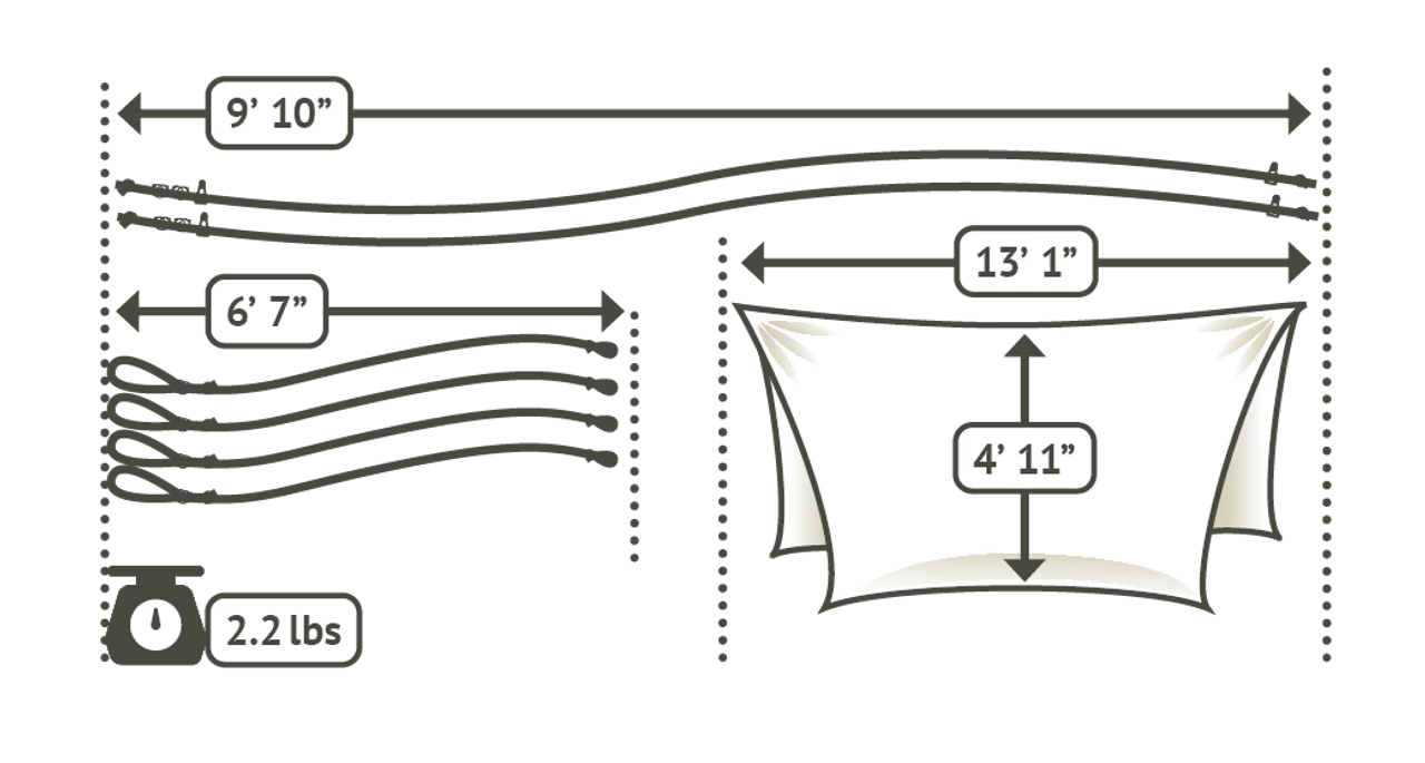 The ClassicFly sun cover and rain fly is made of high-quality ripstop fabric, offering unparalleled protection for you and your hammock. -Total length: 13 ft 1 in; Total Height: 4 ft 11 in. -Water-Repellent -UV-Resistant -Total length: 13 ft 1 in; Total Height: 4 ft 11 in. -Thanks to a special weaving technique, the ClassicFly"™s Ripstop fabric is durable and tearproof. -Water-Repellent -UV-Resistant
