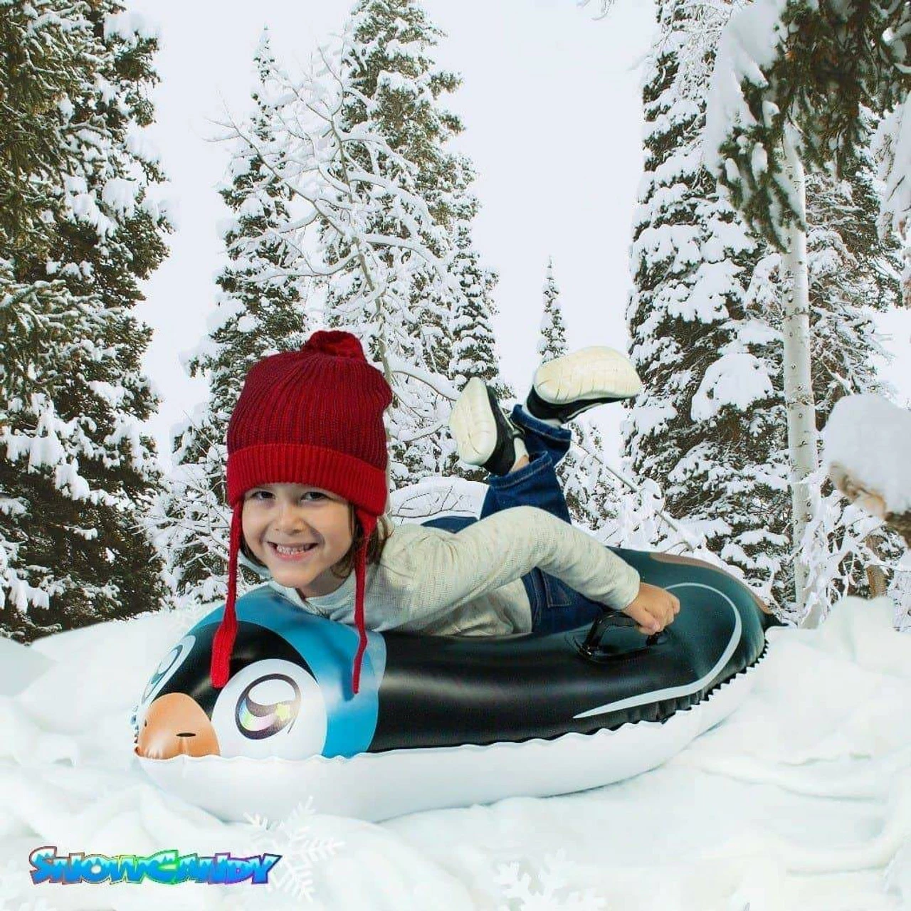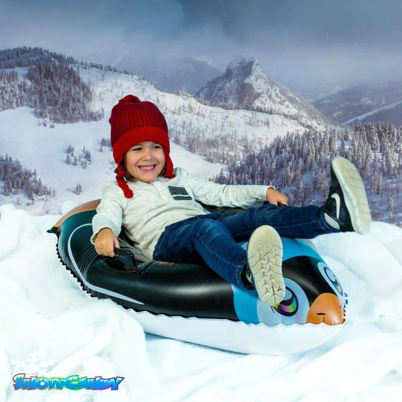 Waddle yourself down the mountain or around the neighborhood with this snow sled! Made from PVC Easy to use Deflates quickly for simple storage.
