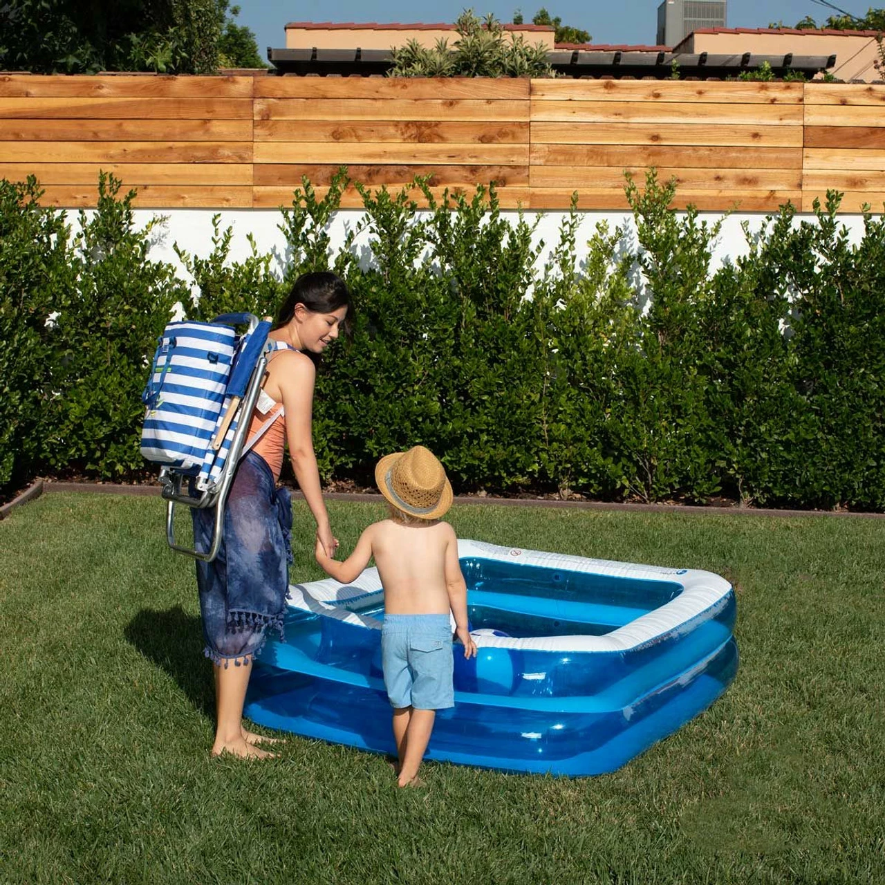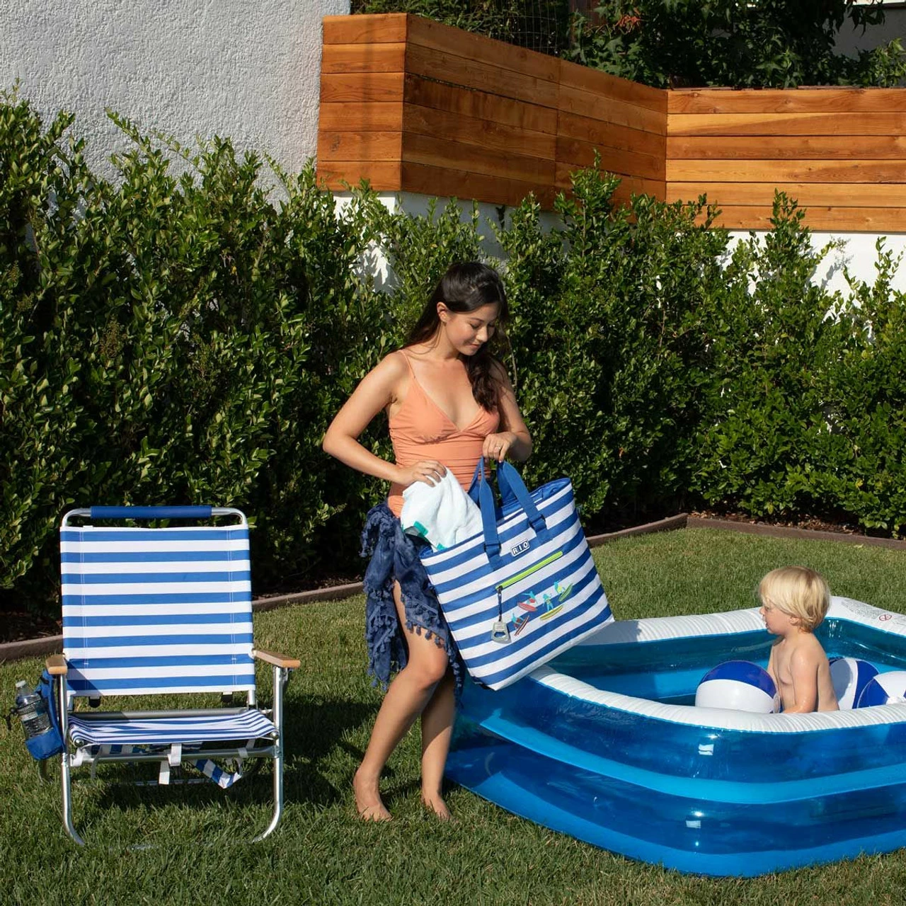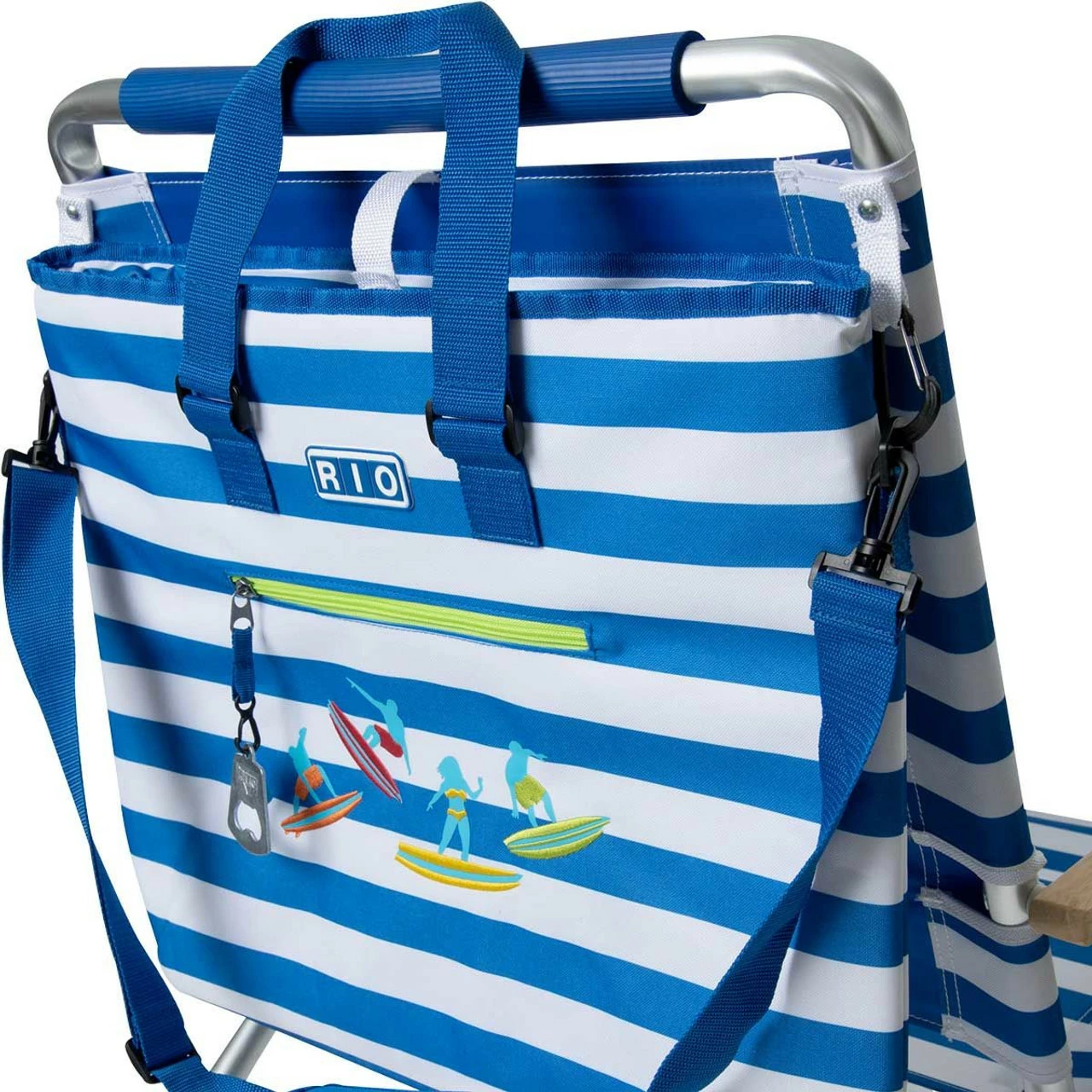 Rio Brands Rio 3 Position Aluminum Backpack Chair With Removeable Tote – Blue White Stripe