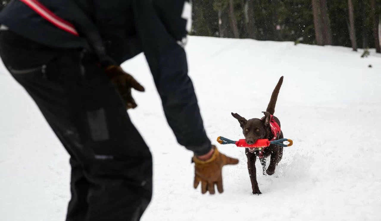 For handlers of avalanche rescue dogs, the Pacific Loop is a tool that motivates and rewards canines in training and at work. Built to withstand day-in-day-out use, it delights not just dogs on the job, but any canine who finds nothing’s more fun than a good ol’ fashioned game of tug. Length: 20.4 in Floats Centrally located tug pad encourages targeted interaction Wide-set handles create space between hands and dog's mouth Hard-wearing materials suitable for the rigors of play Buoyant foam core