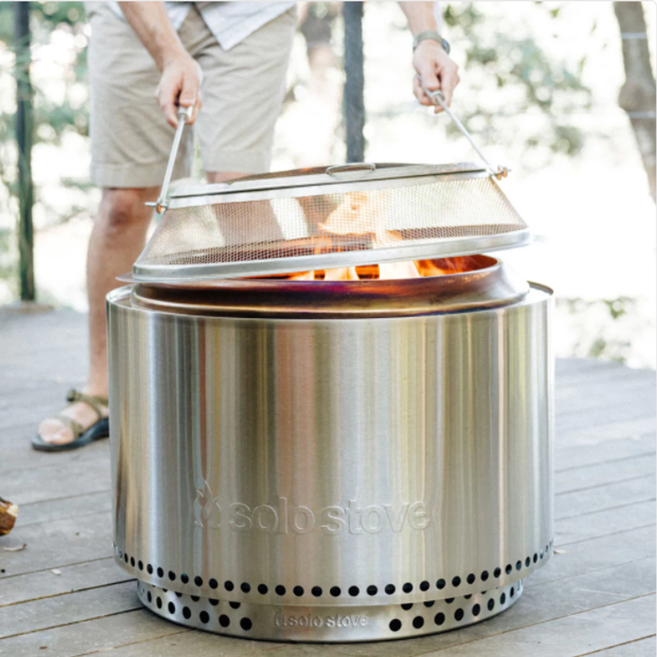 Kick back, relax and enjoy the awesome glow of the Solos Stove® Yukon Backyard Bundle Fire Pit! This item is considered oversized and is excluded from FREE SHIPPING.Materials:304 Stainless Steel Fuel:Firewood Logs Weight:49.05lbs | 22.25kg What's Included: Yukon "” Ultimate backyard fire pit Yukon harnesses Our Signature 360° Airflow Design„ to give you a smoke free, roaring fire in minutes. Stand "” Minimizes heat transfer to surface below Stand raises up your fire pit, allowing cool air to pass through its vent holes. Burn your Yukon without the worry of damaging heat-sensitive surfaces. Shield "” Traps sparks and embers No need to worry about sparks and embers popping out of the campfire. Thetwo-piece design lets you remove the top to add more wood to your fire. Shelter "” Protects Yukon from the elements Repel rain, snow, dust, wind from damaging your Yukon with this weather *resilient* cover. Shelter is made from PVC-coated polyester "” the same material used to make whitewater rafts.