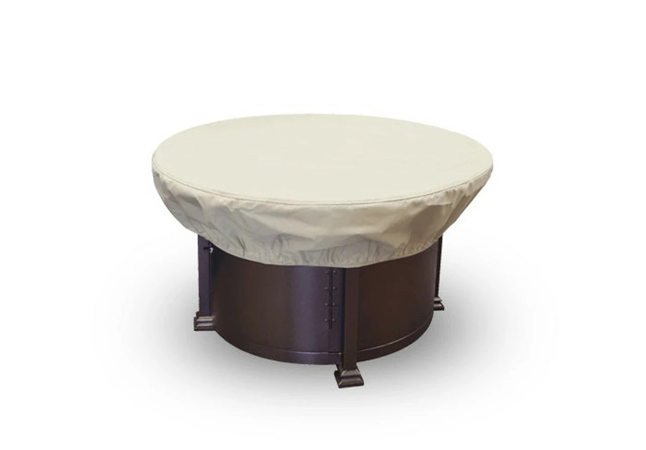 Cover for Fire Pits Made from Rhinoweave FIts all 36'' circular Fire pits, Round Tables, and Ottomans Can fit 24'' – 36'' Fire pits, Tables, and Ottomans which are round Dimensions are 43'' Diameter x 12'' Height